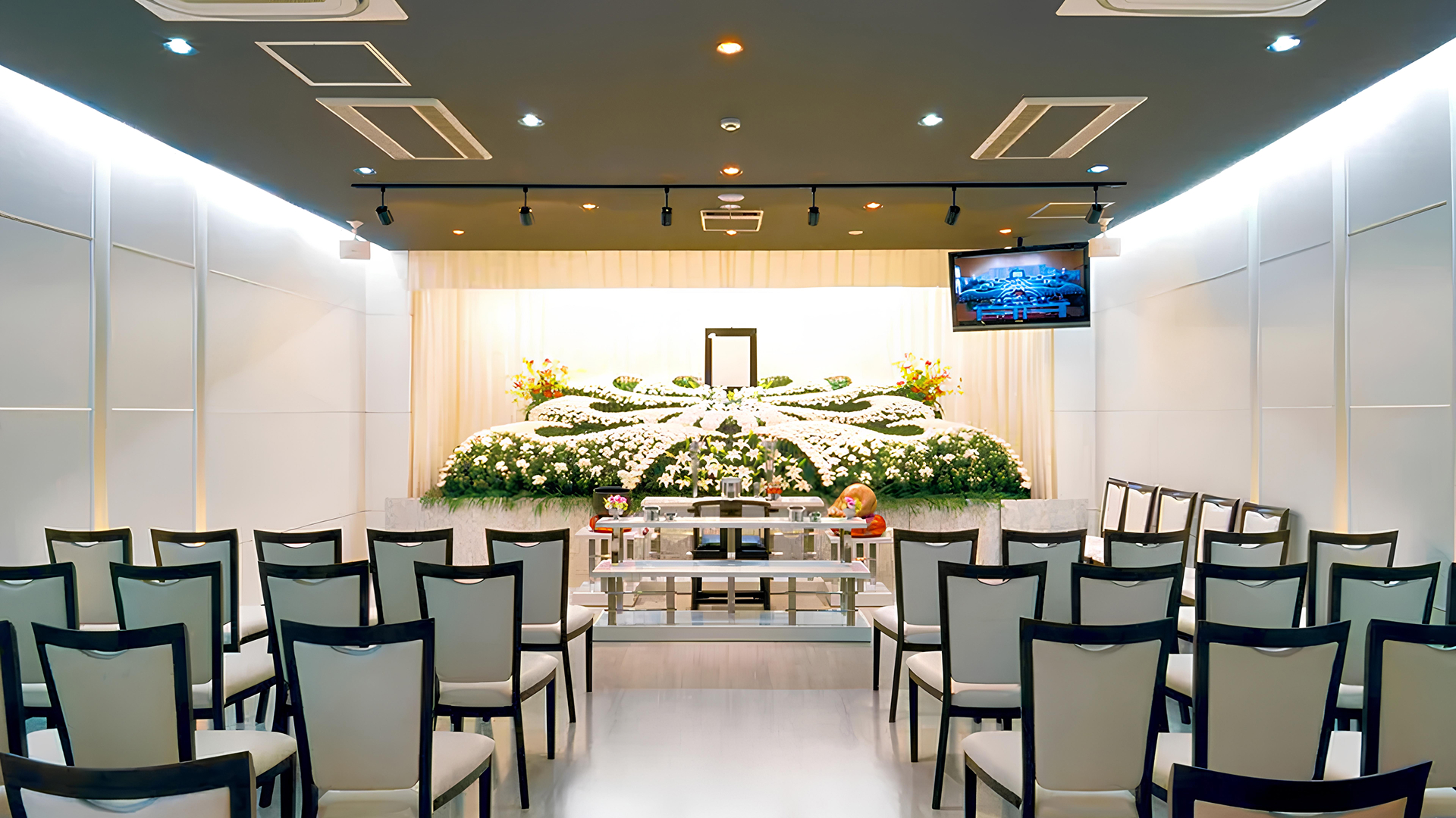 博愛社では、さいたま市内の最寄駅から徒歩5分圏内にある自社ホールを、貸切でご利用いただけます。他のご葬家と重なることなく、ご家族だけで落ち着いたお別れの時間をお過ごしいただけます。