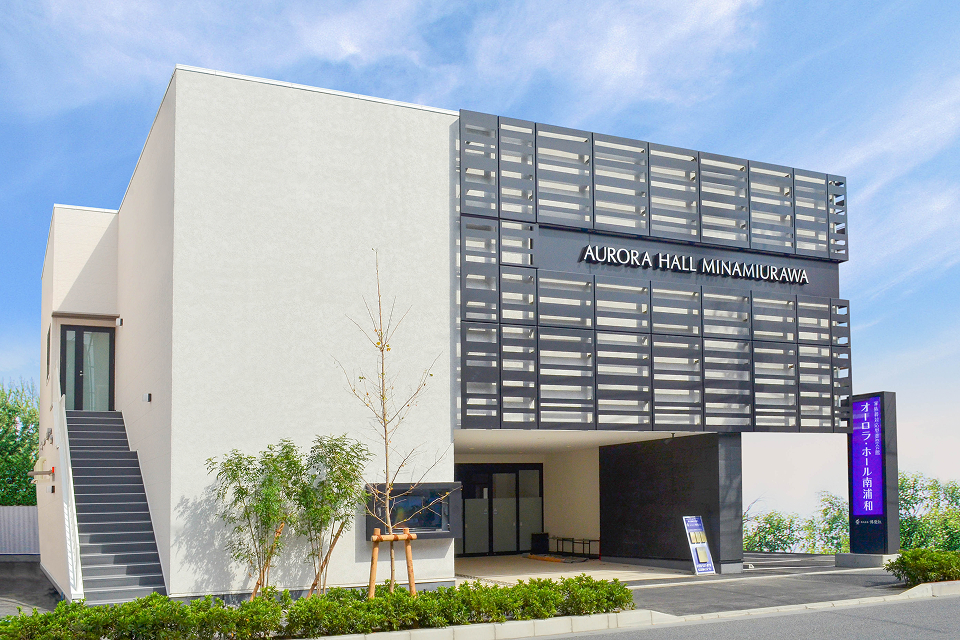 落ち着いたモノトーンの外観が印象的なオーロラ・ホール中央は、さいたま市で家族葬から一般葬まで幅広く対応できる葬儀式場です。ご家族やご参列の皆さまを温かくお迎えいたします。