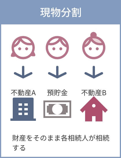 | メリット | 各相続人が実物の財産を取得できるため、財産の具体的な価値を実感できる 財産の特性を活かしたまま引き継ぐことができる(例:不動産や事業) |