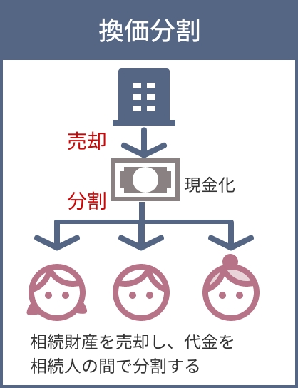| メリット | 財産を売却して金銭に換えるため、公平に分割しやすい 動産や事業など、具体的な利用価値がなくても現金化できる |