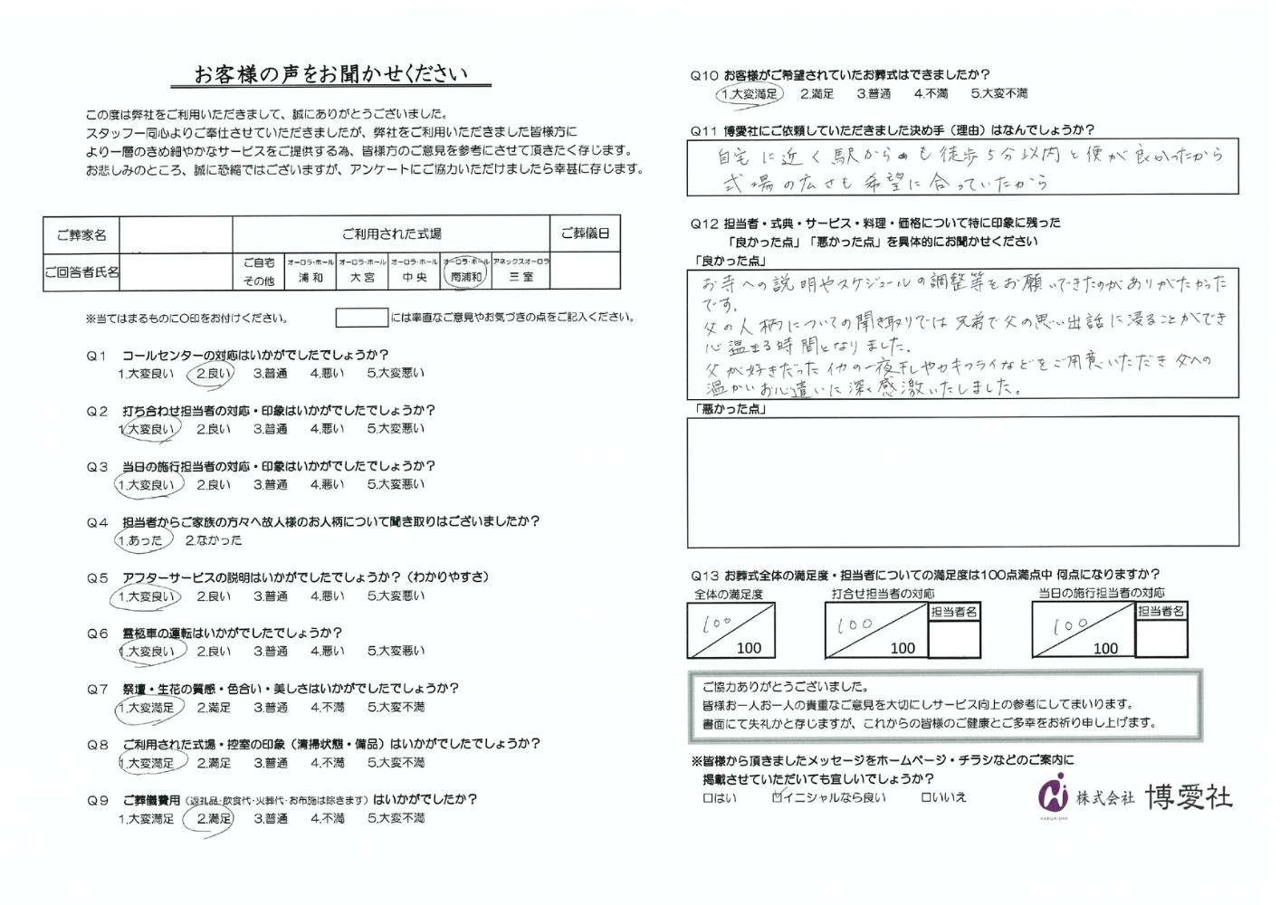 博愛社では、葬儀を終えられたご遺族の方にアンケートにご協力いただき、より良いサービスの提供に努めております。
